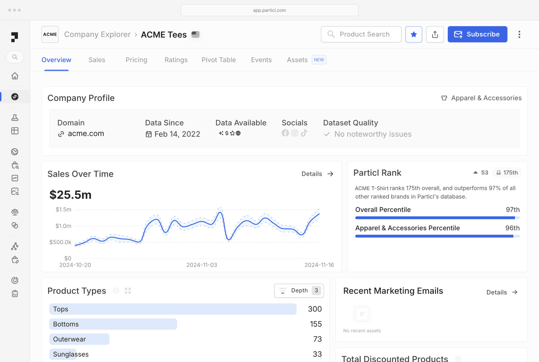 Particl AI tracks sales, inventory, pricing, assortment, and sentiment across all of e-commerce. Quickly identify profitable opportunities in the market.