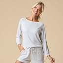 Product image for Solid Marshmallow Reverse Seam Crew Neck Lounge Set with Bracelet Sleeve